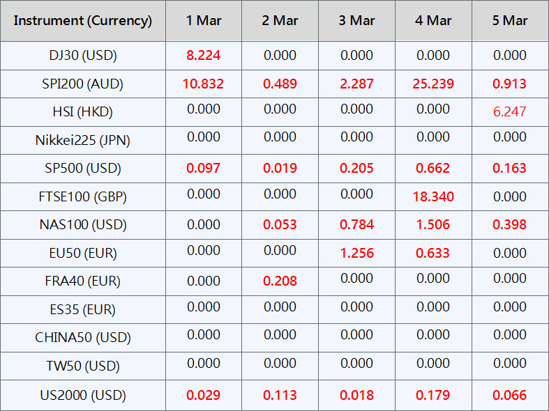 Please note the above data are subject to changes. Please refer to MT4 for details.