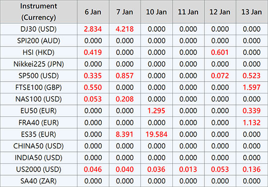 Please be advised that the dividends of the following index CFDs will be adjusted by upcoming ex-dividend dates. The comment for trading index CFDs will be in the following format “Div&<Product Name>&<Net Volume>” which show in the balance after the close of the day before the dividend payment date.